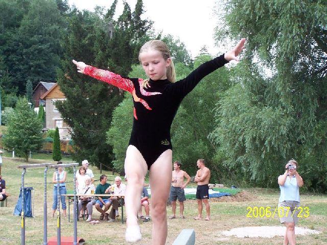 Turnen ganz weit oben (auf dem Schwebebalken) -